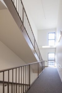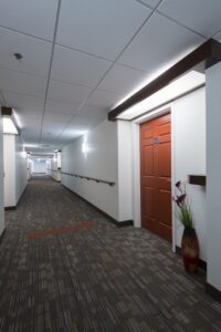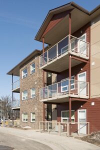 Existing bungalow units were demolished to make way for the new 48 unit, 46,500 square foot, three-storey building. Construction is wood frame and the building features balconies, PVC windows, and cementitious siding. A parking lot, landscaping and new storage garage were all included in the project scope.