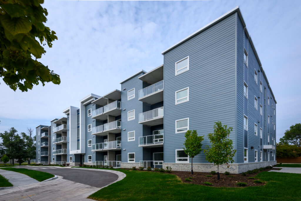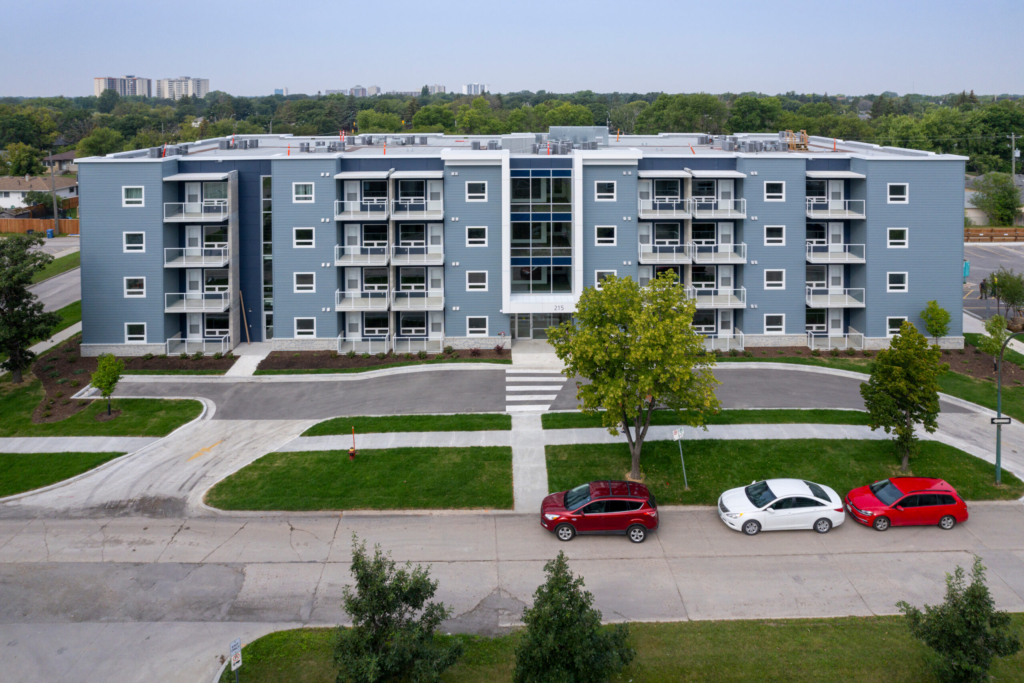 For over 20 years, St. James Kiwanis Village has been evolving to meet the needs of Winnipeg’s aging population, creating a welcoming and supportive community for seniors. The Kiwanis Courts West project marked the final phase of this ambitious campus redevelopment, replacing outdated bungalow-style apartments with a modern, four-storey, 51-unit residence.